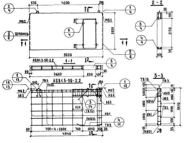 В1.3-50.27.12-2.2    Внутренние стеновые панели   (Серия 1.131-1).